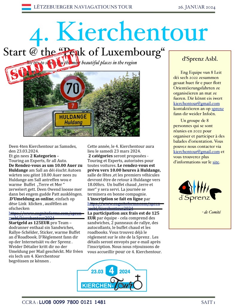 No engem Prologue an weideren 4 Etappen mat duerchwuessenen Wieder sidd der och baal all ukomm. Mier hoffen ett huet Iech Spaass gema an fréen eis Iech um 5. Kierchentour, 2025 remzegesin.